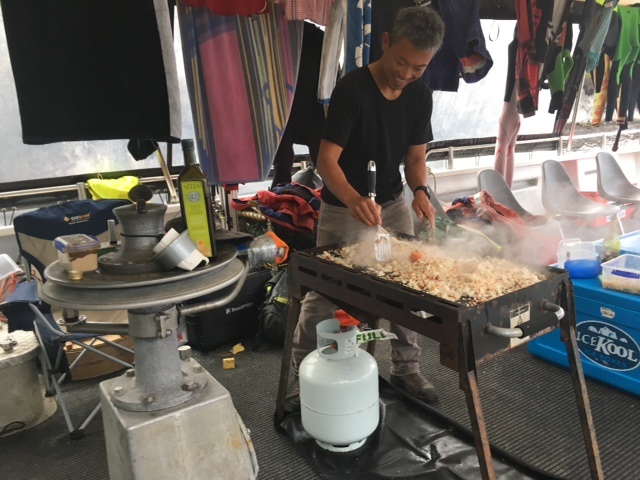 This morning it was very rainy and windy, and we couldn't clean any beaches, so we sailed inland into Bathurst Harbour, an amazing place that is unlike anywhere else in the world because of the layers in the water. We anchored near Clydes Corner and climbed some mountains to see spectacular views. That night Masaaki (who is a famous chef) made a massive pile of yummy fried rice with stripey trumpeter fish.